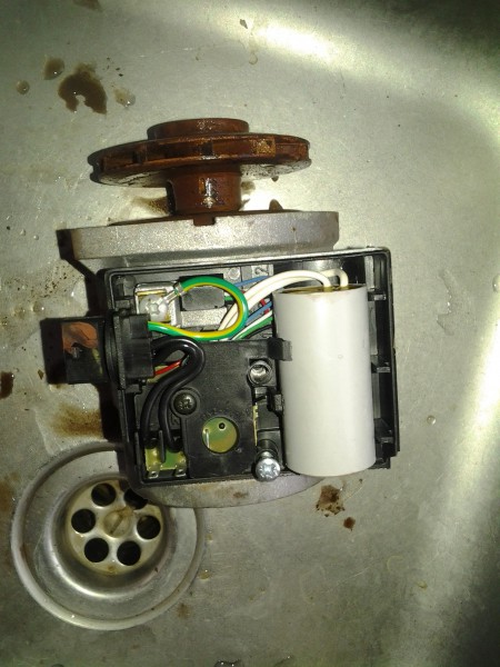 Pyöriköhön se pumppu siinä pöydällä, kun laittoi sähköt? Jos ei, käsin voipi kokeilla antaa alkuvauhtia, sillä jos konkka on sökö, moottori ei välttämättä lähde tulille.