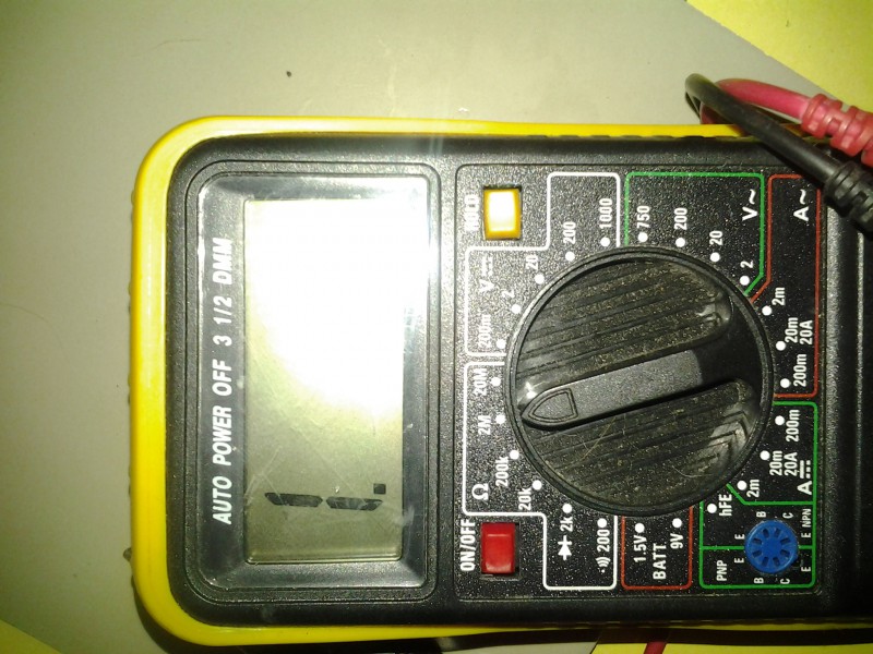 Tuossa lähtö tilanne.  Ja kun laittoi piuhat kiinni niin lukema tippui 0.001. On vai aika ahhdasta mittaila ja käsiäkin vain kaksi   Ja kiinni sähköihin en ole kytkenyt, kun pitäisi tehdä ensin piuha.