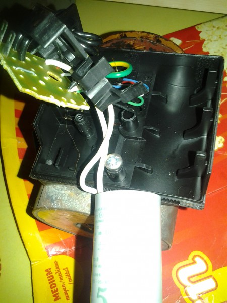 Mittaa toi kondensaattori, todennäköisesti viallinen. Siis se pyöreä harmaa mötikkä.