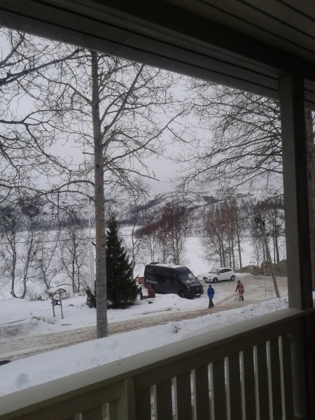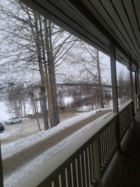 Kun tulin,niin oli +4,nyt pikkupakkanen ja  lunta vähän...