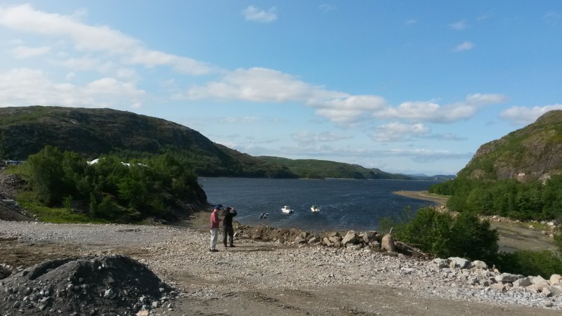 Mökkinaapureilla ja paikallishennereill ä on tapana elokuulla varustaa vene ja verkot Nitsille. Verkot lyötiin syvälle 30 metriin tavan mukaan raudun toivossa, Niinpä vaan pohjoisen puhuri yllätti kalamiehet. Jäämereltä kun puhaltaa reilummin, ei vesille ole menemistä. Poijjaat oli melkein viikon hätäsatamassa komeassa saaressa, Kalasopasta tuli laihaa, kun ei järvelle päässyt. Perunoita ja kirkasta dieetillä miehet. Surullisen näköinen joukkue sieltä palasi.