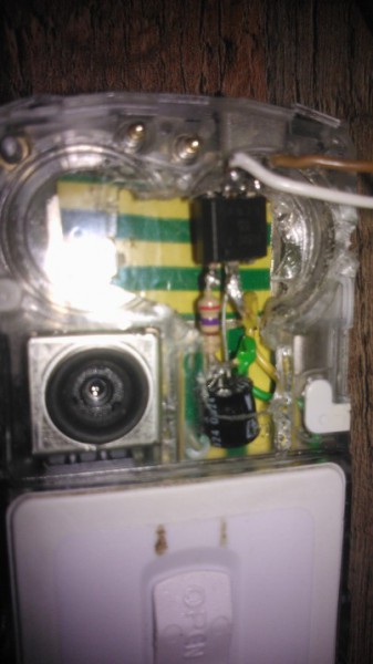 Kun purin pois tuosta 5140stä kaiuttimen ja sen mekaanisen "äänenvahvistimen" sain riittävästi tilaa kytkennälle luurin sisään. Vain pari ohkasta piuhaa tulee kotelosta ulos.Tosssa kuvassa on eka kokeilu eli diodi puuttuu.