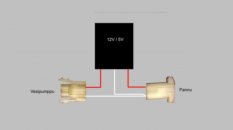 Tohon kytkentääsi löytyy valmis johtosarja millä on helppo kytkeä mokkula. Tarkistan, että löytyykö minulta.