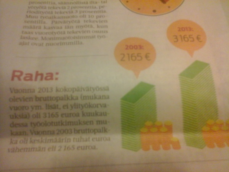 Tämän päivän mullikka kertoi palkkojen nousseen kymmenessä vuodessa lähes 50%.