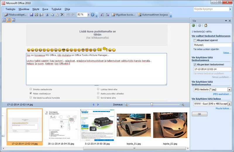 ..täällä kuvia näyttääkseen ei tarvitse pienellä kun raahaa ne viestin pudotusosaan - ei  siis liitetiedostona..