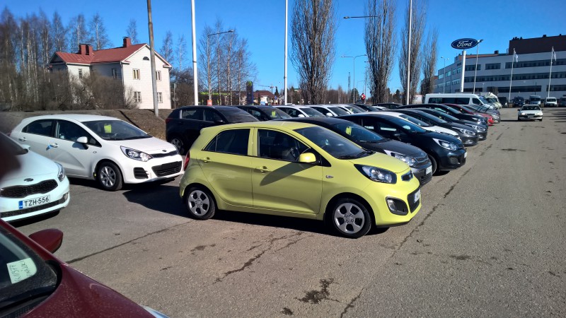 "Seinäjoen rintajoupilla on ainakin halu myydä uusia Kia merkkisiä autoja. Niitä oli pihalla yli 50 uutta autoa".