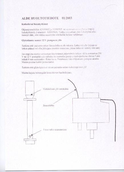 12v pumppu, ns. Kierteellä paisuntasäiliön yläpuolella. Pumppu on Hobby 560 mallissa. Vuosimalli 2003. Tähän päivään asti toiminut. Juu. saattaapi pumpun ropeli tavata paisuntasäiliön pohjaan, löysää sitä kierremuhvia jotta voit liikutella pumppua hieman ylös/alas josko raklatua loppuisi. Se ropeli osa on yhdistetty moottoriin kumiputken pätkällä ja toisinaan pääsee luistamaan alaspäin ja tapaa paisuntasäiliön pohjaan, saanee takaisin paikoilleen vaikkapa pöytää vasten painamalla. Tässä nyt jotain millä alkuun pääsee. Kiitos vinkistä. Täytyy tarkastaa asia kun olen seuraava kerran vaunulla