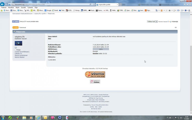 onks tää Virpimu76 kun ei oo kuulunut mitään?No minä en ole ,mutta ainakin omalta koneeltani pimatsu pääsisi tänne..mulla sen tunnukset,jotta voitiin koittaa että toimiiko...siis toimii... Eli ilmoittelen pimulle jotta sulkee koneensa vuorokaudeksi jotta vapautuu uusi ip hälle. Toivottavasti pääset omalla koneellakin tänne. Ilmoitellaan sitten tänne kun oikea pimu on paikalla. Ei aio olla muuten enää koskaan hiljaa |