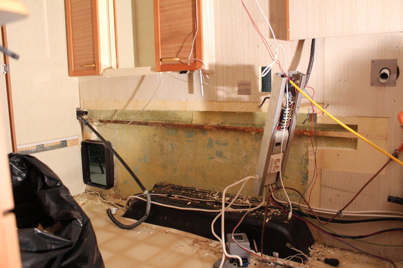 Kyllä se eritys on styroksia tässä, mutta tarkoitankin tuota puuosaa, eli oli se eriste, polyuretaani,foam tai styroksi niin vaunun rungossa on puukehikko mihin esim laitetaan nuo kaapit ym kiinni. Tuossakin kuvassa tuosta kulmasta on 2/3 osaa otettu pois tuosta puukaaresta.