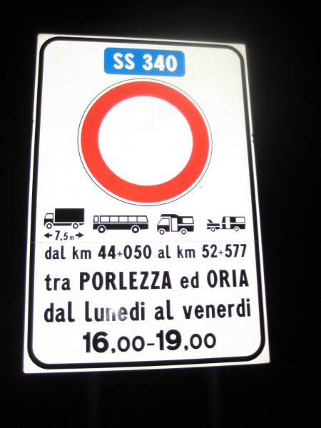 ![]() Tuo taitaa tarkoittaa sitä, että Porlezzan ja Orian välisellä tiellä, alkaen km-pylväs 44+050 ja päättyen km-pylvääseen 52+577 välinen pätkä on kielletty maanantaista perjantaihin klo 16-19 noilta kyltissä mainituilta kulkuneuvoilta ![]() Lunedi on siis maanantai ja venerdi perjantai! t.Kaarina Mitä tämä liikennemerkki tarkoittaa.Mahtaakohan kulkimesi mahtua tähän 3m korkeaan ja mutkittelevaan "ojarumpuun" ![]() Jep