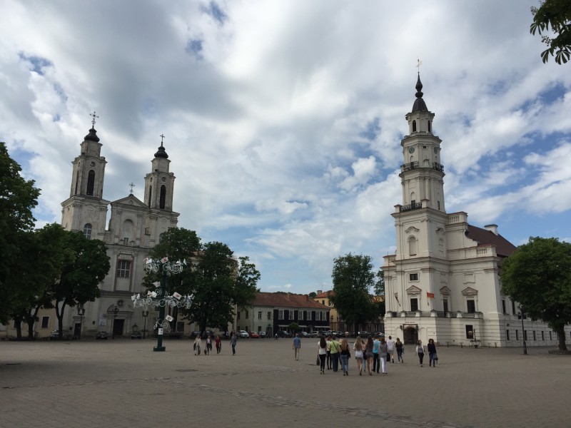 Ajeltiin aamulla johdinbussilla keskustaan, kateltiin linna, katedraali ja joki. Hyvin syötiin. Perunaa osaavat täällä kasvattaa ja valmistaa, eikä ole lihakaan huonoa. Oluttakaan ei voi moittia. Mukava maa ja viihtyisämpi tämä Kaunas kuin Vilna.