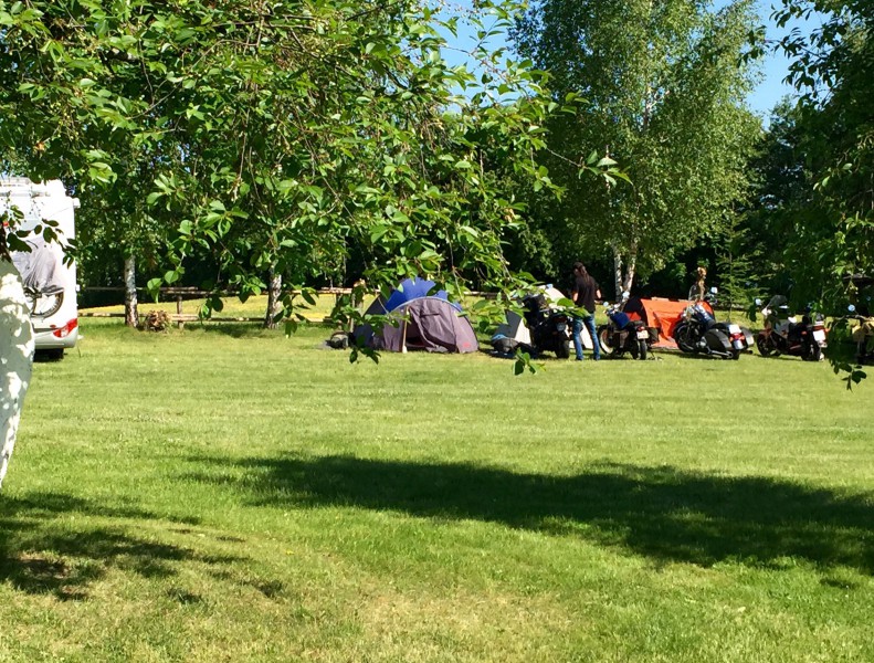 Jep, tässä persus puupenkissä nautin tovin aamuauringosta ja lähen käynnistelemään Hymeriä. Samalla herätän yöllä vähän melunneet moottoripyöräilijät vierestä. Piti laittaa niiden takia toinenkin korvatulppa.