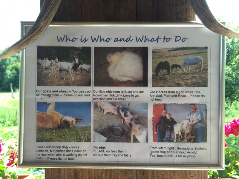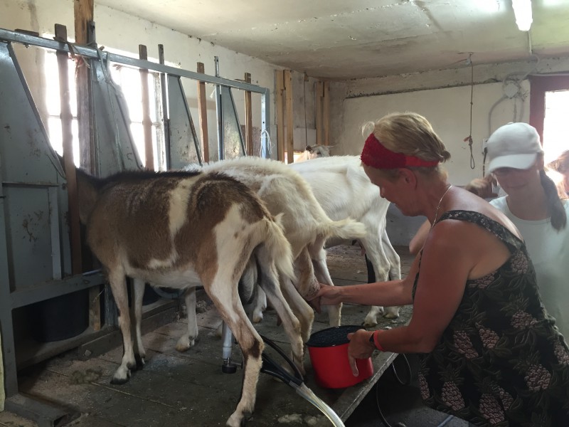![]() ![]() Keittiökatos, jossa jääkaappi. Ota mitä haluat, kirjaa ylös, maksa lähtiessäsi. Munia, juustoja, olutta... ![]() Sikoja saa ruokkia. Kun antoi puoli pussia vanhaksi päässyttä leipää toinen sanoi "Oink!". ![]() Vuohien lypsyä saa seurata ja osallistuakin. Aamulla saa klo 8 tilausten mukaan tuoreet sämpylät ja haluamansa määrän vuohenmaitoa. ![]() Ja huom! Heinä- ja elokuussa ennakkovaraus välttämätön - paikka on pieni ja hollantilaisten suosiossa (hehän ovat useimmiten niitä mukavimpia naapureita reissun päällä). Muulloin on tilaa, ja ehkä sitä tehdäänkin tarvittaessa. Olehan siellä pitkässä heinikossa varovainen punkkien takia, alkaa olla koko pohjoinen keski-eurooppa lyme eli borreliiosia aluetta.