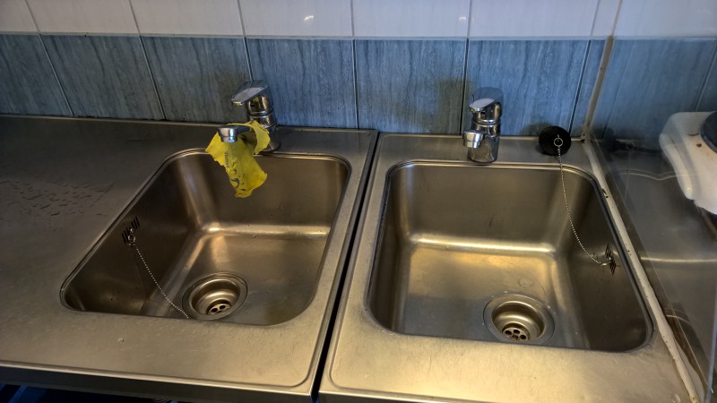 Onnelaan saavuttu. En tiedä missä väki on astioita pessyt mutta kyllä lämmintä vettä tulee tiskipaikalla.