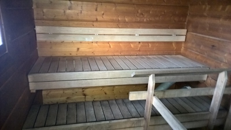 Ja jos saunassa ei koolipesu kelpaa niin voi kävellä 20 metrin päähän suihkuun.