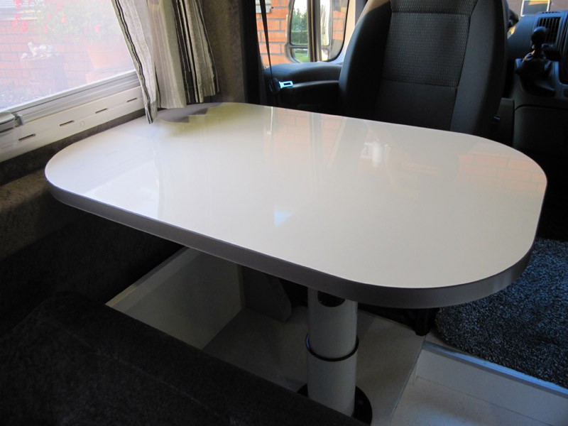 Tammipöytälevy vaihtui 8 cm kapeampaan laminaatti tasoon. Uuden pöydän mitat ovat 58 cm x 92 cm.