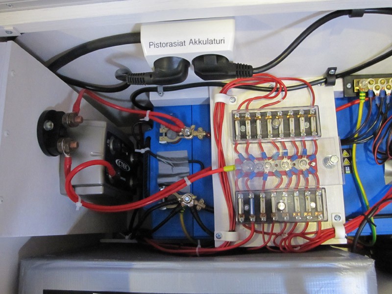 CTEK D250S Dual DC/DC laturi asennettu lataamaan asunto-osan akkua auton käynnistysakusta moottorin käydessä. Lataus alkaa kun jännite nousee yli 13,1 V yli 5 sekunnin ajaksi ja on enimmillään 20 A. Lataus loppuu kun jännite laskee käynnistysakussa alle 12,8 V yli 10 sekunnin ajaksi. Laturissa on valmiina liitäntä aurinkopaneelille ja sisäänrakennettu MPPT lataussäädin.