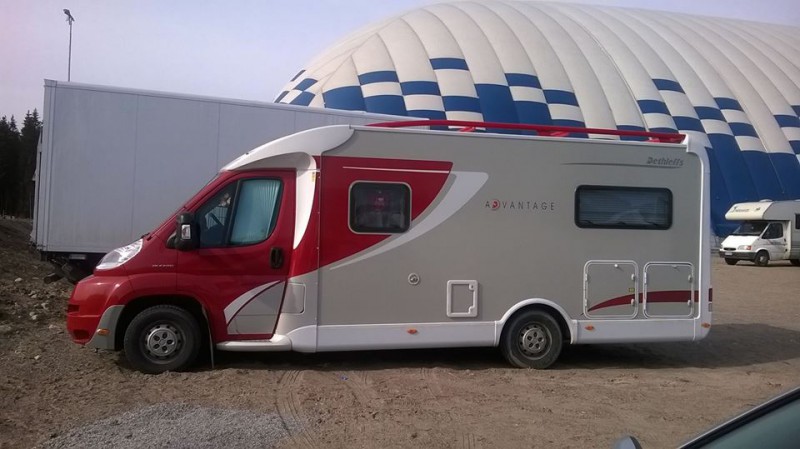 Vaikka se ei oikein kuvassa erotukaan, niin onni on pieni mäki etupyörien alla, että ei tarvitse kiilojen kanssa leikkiä.