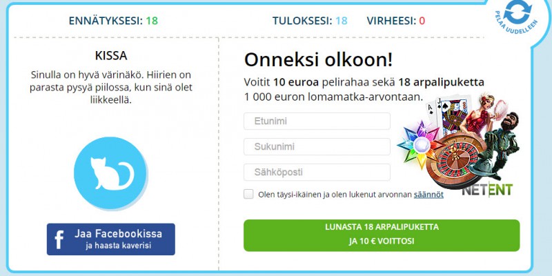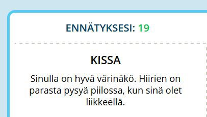 Kiitos hauska testi- 2 väärin toinen virheklikkaus kun osui viereiseen kuin tarkoitin. Pääsin tiikeriksi