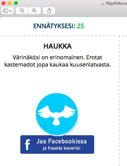 Ukon kans haukka 25,mutta viimesiä on arvattava..ei tässä koneessa erotu..