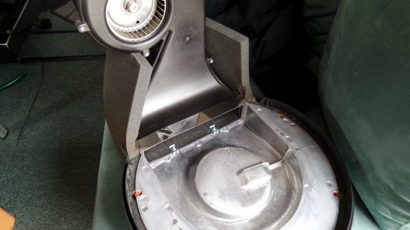 Otin itsekin superlonin pois ja laitoin pikkuisen palovillaa siihen puhallinkotelon ja pöntön väliin. Alumiiniteipillä teippasin päältä tiiviiksi. Palovillaa siksi, että sen kotelon ja teipin väliin ei olisi jäänyt turhaa ilmarakoa.