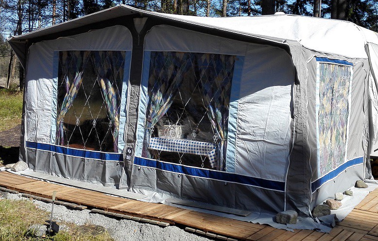 Tuli ostettua uusi teltta erään karavaaniliikkeen verkkokaupasta viime syksynä, kun oli tarjouksessa viimeinen kappale.