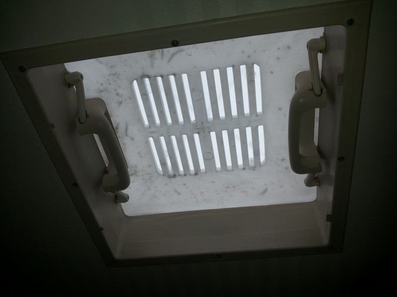 Ilmeisesti ei mitenkään, koska luukku on selvästi osa ilmastointia, ellei jopa kokonaan...