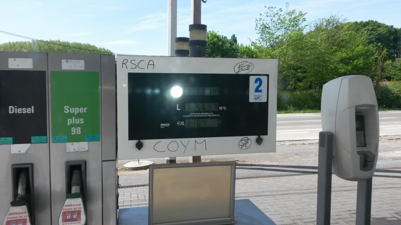 Tällä hetkellä Belgiassa on diesel ja 95E saman hintaisia eli noin 1,35€/ l on hinta.