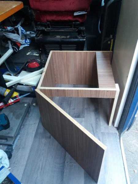 Hanttarin penkin taakse tuleva istuinpaikka. Tuohon tulee päälle tuplalevy, joista alempi saranoidaan takareunasta niin että nousee ylös (kuorkkivaatimuksia). Ja toinen levy saranoidaan päälle niin että taittuu tuon laatikon avattavan päädyn päälle. Tätä rakennetta joutui jo vähän aikaa pohtimaan :D