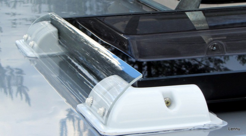 Itse laitoin tuollaisen tuuliohjaimen, idea tosin oli kaverin, joka työkseen tekee kaikkea "muoveista". Kaveri sahasi putkesta tuollaisen palan ja laitoin sen kateruuveilla kulmapaloihin kiinni, Kenno 130A ohutkalvopaneeli.