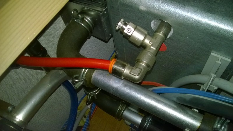 Täytyy tutkailla tänään lisää, nyt kun tiedän miten toi liitos toimii. Tuolla seinän vieressä on toinen 90-mutka. ja väliletku on aika lyhyt. Varmaan toi on lähtenyt vuotamaan sen takia, kun on jatkuvasti pienessä vedossa.
