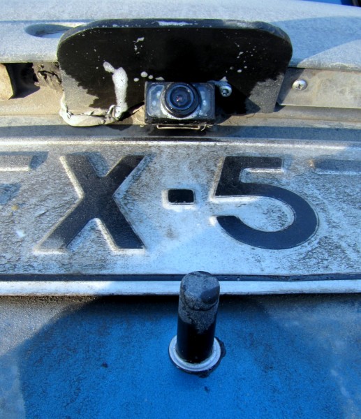 Laitoin peruutuskameran nyt vaihteeksi ylemmäs, näkyy paljon paremmin, paitsi vetokoukku. Minä tykkään laajasta kuvakulmasta, se kyllä vääristää maisemia, tässä pitäisi olla 170 astetta.