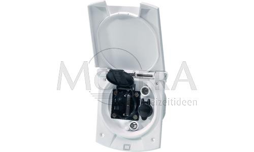 Meillä tapahtuu myös kaikki ruuanvalmistus ulkotiloissa. Leiriytymisen aikana Privacy Roomissa on sähköliesi, mikroaaltouuni ja kahvinkeitin. Lisäksi läppärille tarvitaan virtaa ja formulaviikonloppui na myös televisiolle. Etelänretkillä etutelttaan voidaan lisätä myös kylmäarkku. Sähkögrilliäkin olen harkinnut. Kesäisin meillä sähköä tarvitaan siis enemmän matkailuajoneuvon ulkopuolella. Ulkopuolella on enemmän tilaa valmistaa ruokaa, mikä tekee siitä turvallisempaa ja mukavampaa. Tuuli vie käryt mennessään eikä aamupalan valmistus herätä koko vaunukuntaa. Eikä sisätilat lämpene liikaa helteillä. Tässä syy, miksi käytän tuota aiemmin mainittua sfc-alueiden hylkimää kaapelikelaa, josta löytyvät shuko-pistokkeet.