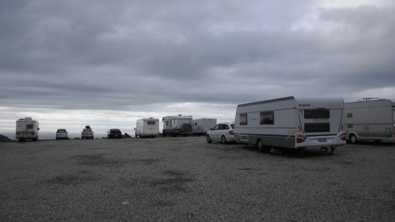 Ei ongelmaa leveyden suhteen, itsekin parivuotta sitten 2,5 leveällä vanulla käyneenä. Ja itse kyllä menisin vaunun kanssa Nordkappiin, siellä kun saa samaan lipun hintaan yöpyä kaksi yötä (sorapintainen parkkialue).
