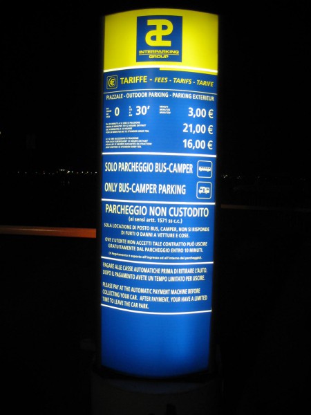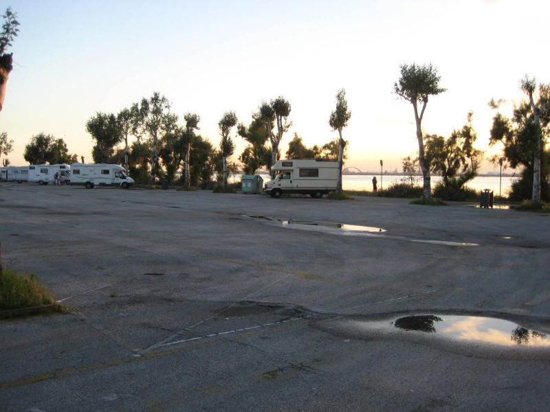 Olettoko pitkään Venetsiassa. Saaressa on stellplats asautoille, hinta luokkaa 25€/24h ja palveluina vesi ja kemssantyhjennys, sähköäkin taitaa olla tarjolla. Heti siltojen jälkeen oikealle, ihan sen automaattijunan päätepysäkin vieressä rannassa.