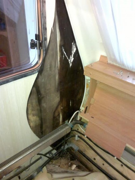 Kuivata kohta ja ottaa märkä pois, uretaani reikään ja sitten vain uusi reilu vesivanerin pala siihen päälle ruuveilla ja sikamassalla, jos pohja on muuten kunnossa.