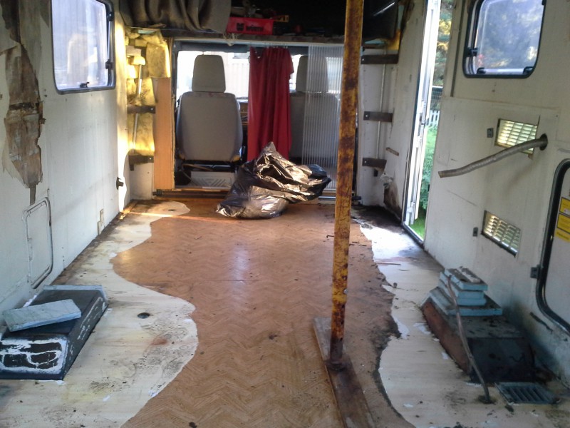 Noh ensi ajatukseni oli että perän ja katon uusimalla päästään pitkälle, ehkä muutama puu seinistäkin pitää uusia. Mutta paikanpäällä huomasin, että menee kaikki seinät uusiksi ja myös katto, mutta lattia tuntui hyvältä. Nyt kun olen sisustan purkanut ja lattia mattoa repinyt niin selvisi, että lattian molemmat kylkipuut ovat myös mädät. Siis pitää aukoa lattiakin.