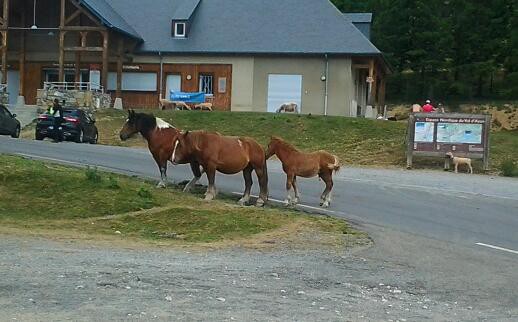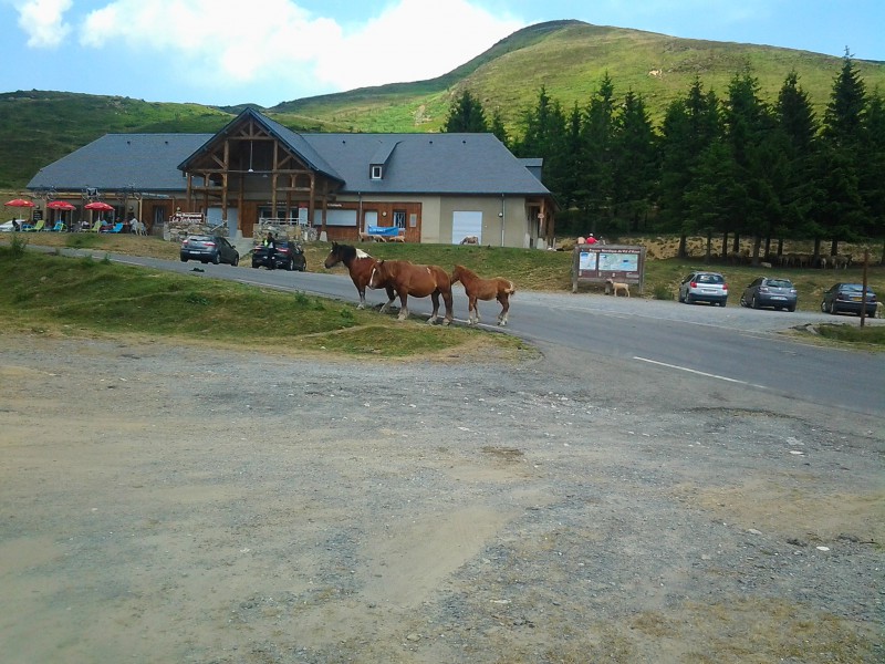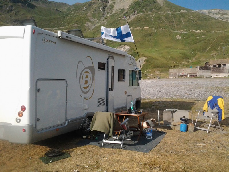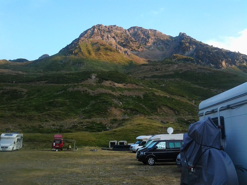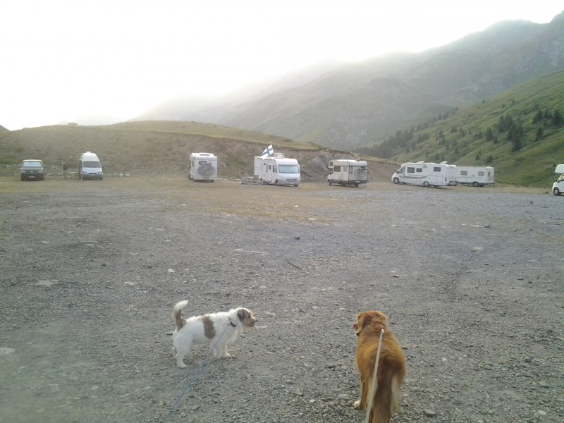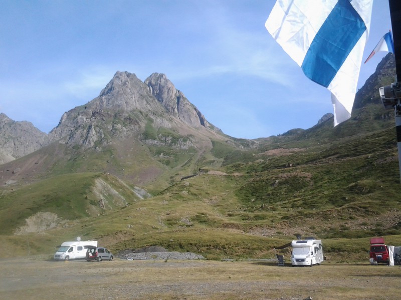 13.07 Col de tourmalet, altitude 1740 m oli meidän puskaparkki. Ylös nostessa tietä numero D 918 kaikki mahdolliset parkkeerauksen mahdollistavat paikat täynnä matkailu-autoja, henkilö-autoa ja telttoja. Eli huipun ohi mentiin ja ajeltiin alamäkeen noin 3,5 km jossa oli rinnekahvilan iso parkkipaikka.