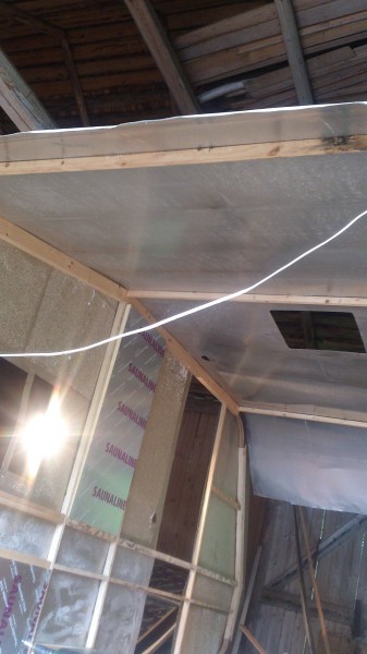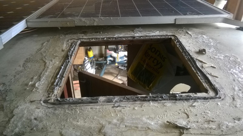 No aloin tutkimaan vuotoa ja huomasin että kattoluukun tiivistys oli päin veetä. Otin sen pois ja huomasin mätää puuta ni sitte karkas homma käsistä. Tarkoitus oli uusia osa kerrallaan,mutta emännän pienellä avustuksella koko vaunu romahti kasaan.
