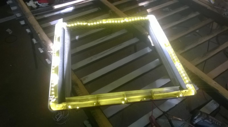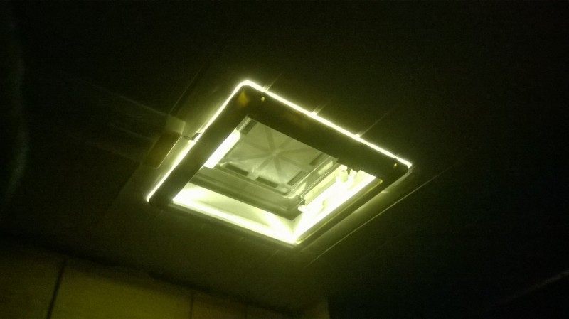 jotain pientä pimeän torjuntaa.. vaik mun kamera ei näi hämäräss oikeen toimikkaa.. normi kasettiverhon ja katonväliin viien millin pleksi mihi ledinauha tuo valon... ei ollu millä kiilottaa leksin reunaa, jott sais enempi valoo kattoon..
