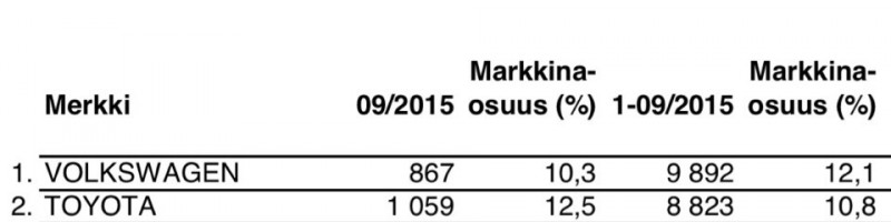 http://nieuws.vtm.be/binnenland/160781-6-op-de-10-ecolabels-liegen Ai niin pitäskö laitta sitten volkkaristakin päivän uutinen, eli enitin myyty oli täällä syyskuussa. http://nieuws.vtm.be/binnenland/160736-volkswagen-meest-verkocht-september Ai niin pitäskö laitta sitten volkkaristakin päivän uutinen, eli enitin myyty oli täällä syyskuussa. Täällä VW on tällä hetkellä eniten myyty automerkki mutta toiseksi jäi syyskuun myynnissä mutta luulen että Bavaria tämän jo tiesitkin, taidat olla yhtä innokas tämän suhteen kuin itsekin, no nuo kodinkoneet ei minua niin suuresti innosta mutta kiitti linkistä. ![]() Ai niin, lupasin eilen etten laita tähän ketjuun enää mitään Volkswageniin liittyvää linkkiä mutta auttaako puolustukseksi se että olihan tässä Toyotakin ja olihan tässä VW nähty myönteisessä mielessä, johdossahan se on...Eihän se autosta huonoa tee, jos päästöt on huijausta. Hyvin ne kulkee kumminkin.
