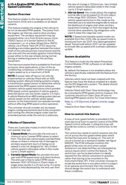 ^ Sähköisen pedaalin mekaanin painaminen on todella herkkä laji - tyhjäkäynti tai 1800rpm Fordeihin, ainakin 2006.5-> saa ohjelmallisesti toteutettua PTO (tm. lanssikäyttö jne.) +25 rpm askelin totutettua IDS:ää vaatii, jos lineaarisen kierrosluvunkorotta jan haluaa..  , mutta ihan kytkimin tai releohjauksella voi käskeä hoppaa nostaa kierroksia  Ohjeet löytyy Fordin avoimesta Etis-järjestelmästä  Entäs fiiut