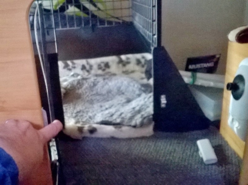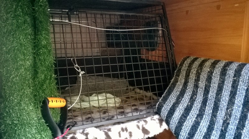 Tuommonen häkki on takapedin paikalla, kaksi ihmistä sopii yläpedille. Tuuletin on etuseinässä ja luukkuja saa riittävästi auki. Kännykällä voi seurata koirien touhuja ja takaosan lämpötilaa. Isomman osan saa jätettyä pois, niin jää tuo vasen osa ja oikealle vaikka lasten sänky. Tietenkin saa pois kokonaan ja siihen on käyttämättömät patjat. Auto häkkeineen voisi olla myytävänä. (Kuva piiloitettu, klikkaa tätä niin näet kuvan.)