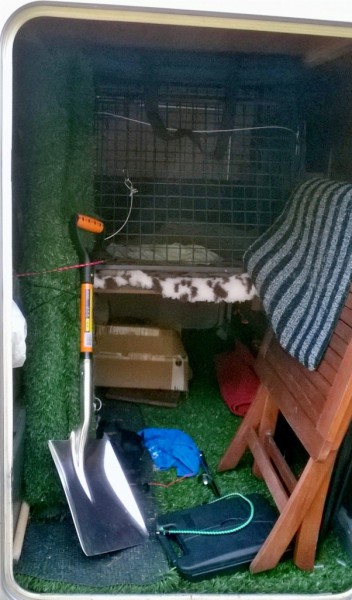 Olisiko mahdollista pyhittää tuota takatallia koirille? Meilläkin tuollainen läpikuljettava (=isot ovet tallin molemmin puolin) kerrossänky-mallinen, B-kortilla ajettava alkovillinen takatalli-auto, jossa alasängyn kippaamalla saa korkean takatallin. No sänky ylös ja verkonpalanen sisäkäytävän päähän, niin on koirien ikioma matkustamo valmis