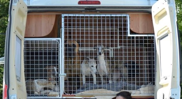 Keski- ja Eteläeuroopan koiranäyttelyiden parkkipaikoilla näkee monia tuollaisia ratkaisuja. Niissä on lisäksi kalteri oven sisäpuolella, että parkissa voi pitää luukkua auki. Vielä luukussa on avattava ikkuna.