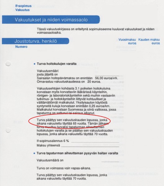. voiko enää uskoa missään asiassa vakuutusyhtiöön. Ei kun nimenomaan uskon tässä asiassa vakuutusyhtiöön, ja toivon että mahdollinen oikeuskin uskoo. Vakuutusyhtiö kun on todennut, että vakuutus päättyy vasta kun vakuutettu täyttää 65vuotta ![]() Nallen firma ei häviä tässä maassa ainuttakaan oikeustaistelua, vaikka olisi miten väärässä. Mutta ihan periaatteesta Onneksi nalle sitten maksaa oikeuskulut, kas kun minulla on oikeusturvavakuutus nallelta joka on tarkoitettu juuri tämmöisiin riitatilanteisiin. Onneksi nalle sitten maksaa oikeuskulut, kas kun minulla on oikeusturvavakuutus nallelta joka on tarkoitettu juuri tämmöisiin riitatilanteisiin. Kato sieltä lopusta viellä se pienen pienellä kirjoitettu osuus "omavastuu xxx€ ja max korvaus xxx€" Kyllä nalle osaa tuon rahan keruun. Ei kun nimenomaan uskon tässä asiassa vakuutusyhtiöön, ja toivon että mahdollinen oikeuskin uskoo. Jos vakuutuksen päättyminen ( 65v ) näkyy kirjallisesti ( kirjoitettuna) vakuutussopimuksess a, ei silloin mielestäni ole kuin yksi ratkaisu oikeudenkäynnissä, vakuutuksen voimassa olo jatkuu. Ei syy voi olla taloudellinen peruste koska tekee kokonaisuudessaan hyvää rahallista tulosta. Aasinsiltana edellisestä, onko vielä sellaisia vakuutuksia voimassa / olemassa joita oli mahdollista siirtää perheen sisällä isältä pojalle / tyttärelle? Joskus 90-luvulla eräs vakuutusyhtiö yritti ostaa työkaverilta sellaisen rahalla pois. Ei tietenkään myynyt, koska oli hyvä ja erittäin kattava vakuutus.