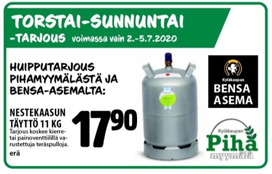Palokaupassa muuten 11 kg täyttö 17,90 € ja mm. Primuksen 2 kg sinisen täyttö 17,90€