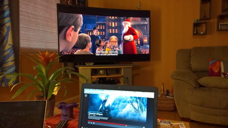 Chromecast on kätevä ja edullinen, kaiken mitä tietsikasta, täppäristä tai puhelimesta näkee näkee myös telkusta. Jokunen omakin sovellus on mm Netflix yms.