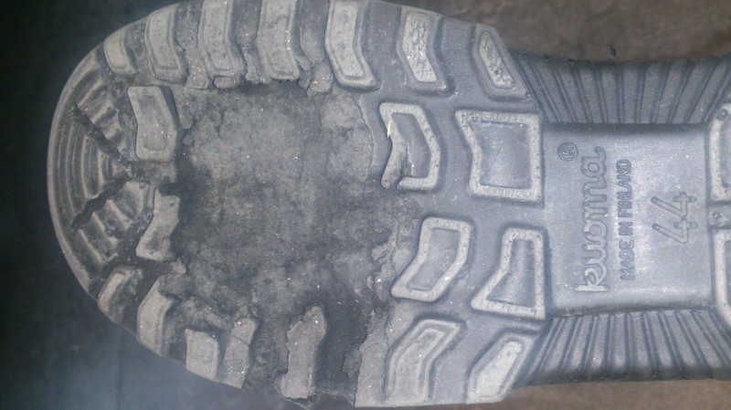 Minä olen käyttänyt Kuomia ainakin 15 vuotta läpi vuoden ja ei ole tuollaista eteen tullut. Ilmoita Kuomalle niin saat uudet kengät.