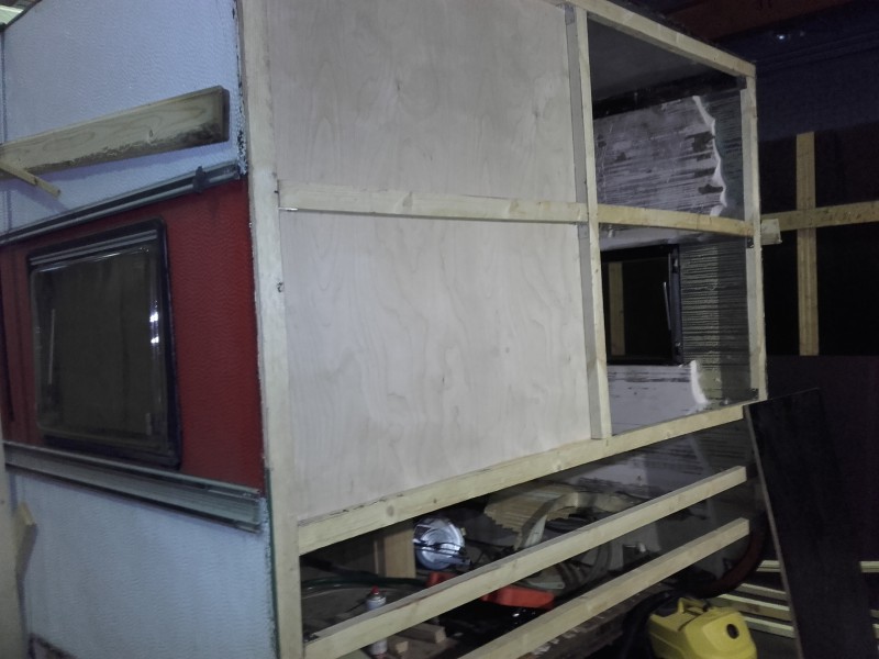 On apua. Jotenkin tuohon tyyliin on meininki korjata nuo "pienemmät viat" kunhan saan tuon takaseinän valmiiksi. Tämä vaunu on hankittu lähinnä työmaa käyttöön, joten näyttely kuntoista tästä ei tarvi tulla. Riittää kun kaikki toimii ja on ehdottomasti kuiva ja homeeton. Kuitenkin noin 100 yötä vuodessa siinä pitäisi nukkua.